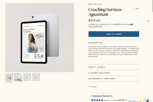 You’ll get instant access to this digital download as a PDF containing a link to a Google Doc, which you can copy or download and easily customize to suit your brand. In addition, you’ll receive attorney-approved instructions on how to put this contract into practice.